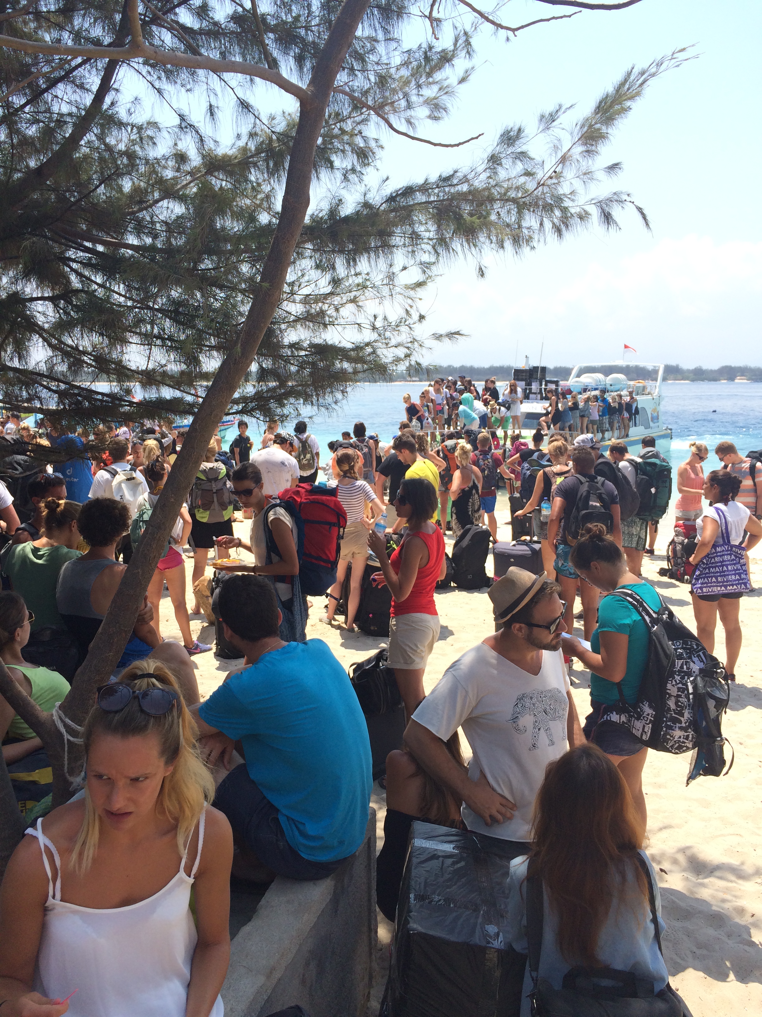 People waiting to aboard boats to leave