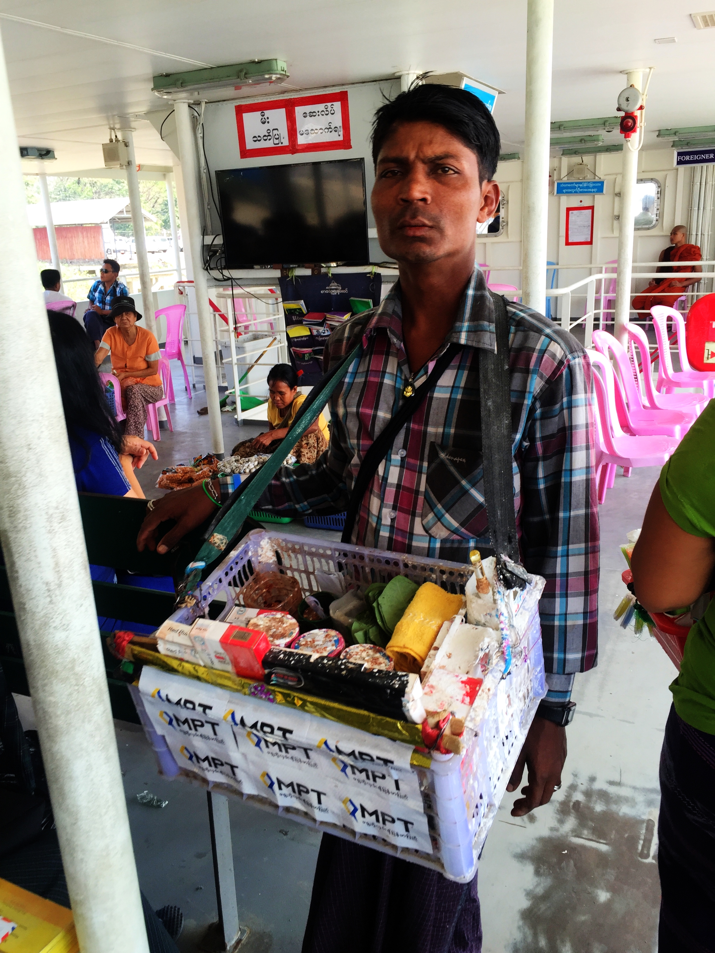 Return to Dala ~ Burma Selling betel nut on the ferry Ferry Sales Dimensions: 2448 × 3264 Aperture 2.2 Camera iPhone 6 Focal Length 4.15mm Shutter Speed 100/16099 ISO 32