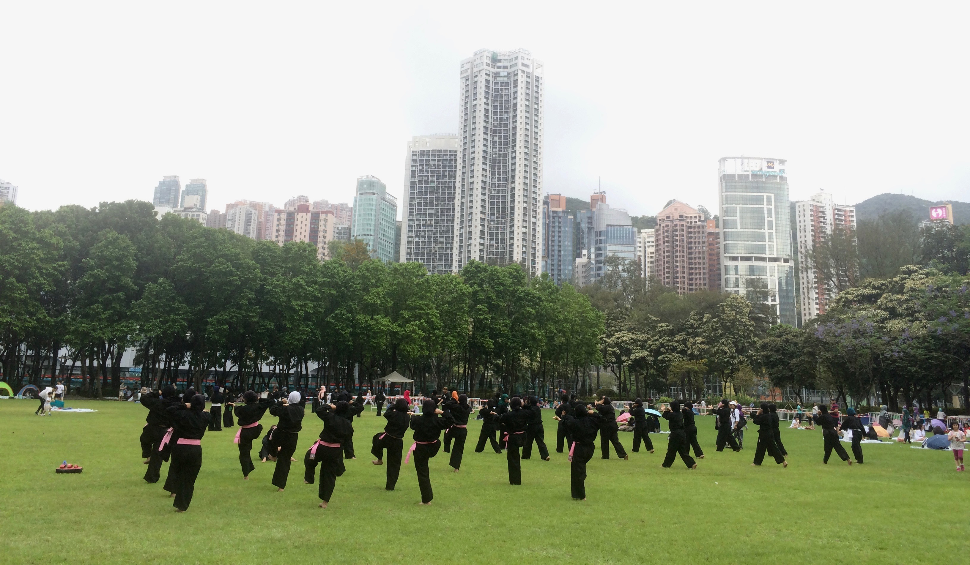 Domestic workers learning judo on Sunday in the park